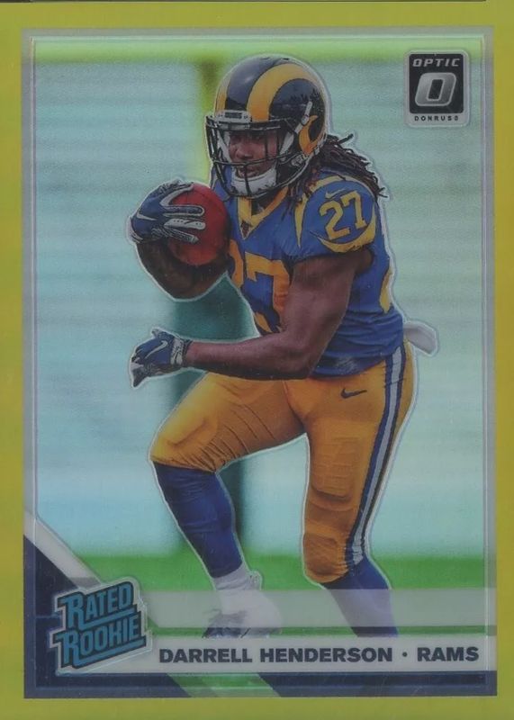 The Darrell Henderson 2019 Optic #160 Gold /10 Rookie card in Raw condition has not changed in price in the last 30 days and was last sold for $0.99 .