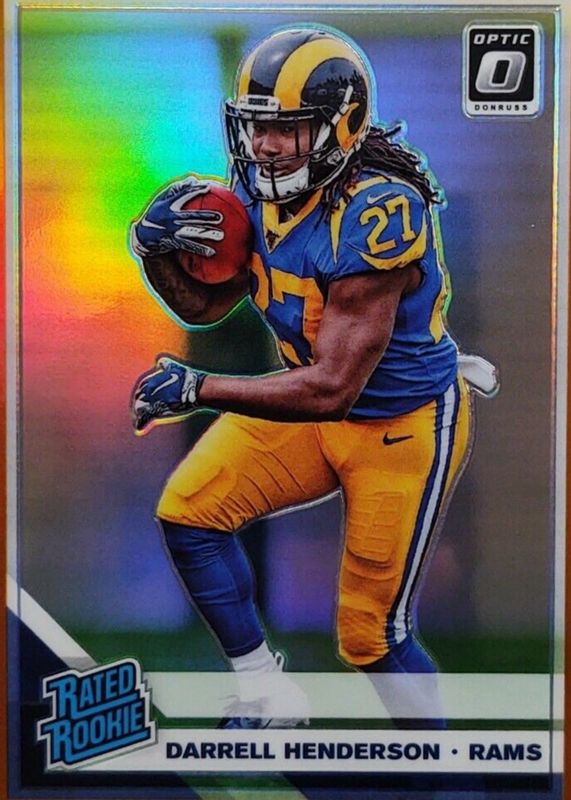 This card is 1 of 18 Darrell Henderson's card variations in the 2019 Optic set being tracked by Sports Card Investor, including Base, Bronze, Green Velocity, Holo, and Pink.