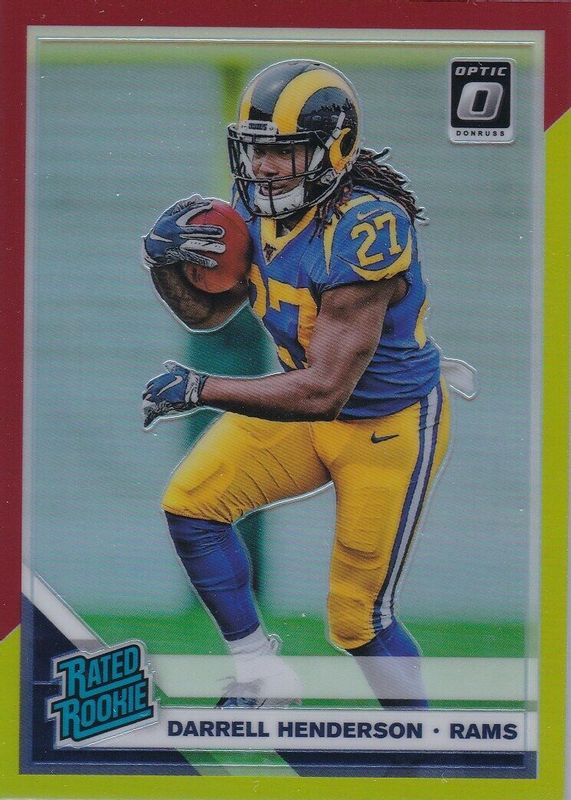 DARRELL HENDERSON RAMS RATED ROOKIE RED YELLOW PRIZMS #160 RC 2019 DONRUSS OPTIC
