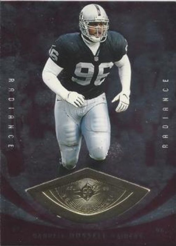 The Darrell Russell 1998 SPx Finite #126 Radiance /3600 card is 1 of 6 Darrell Russell's card variations in the 1998 SPx Finite set being tracked by Sports Card Investor, including #126 Base /7200, #63 Base /7200, #63 Radiance /3600, #126 Spectrum /150, and #63 Spectrum /150.