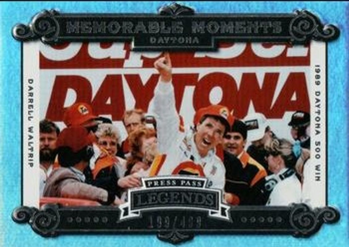The Darrell Waltrip 2007 Press Pass Legends #MM-9 Memorable Moments Silver /499 card is 1 of 40 Darrell Waltrip's card variations in the 2007 Press Pass Legends set being tracked by Sports Card Investor, including #28 Base, #56 Base, #S-56 Solo, #S-28 Solo, and #B-56 Blue /999.
