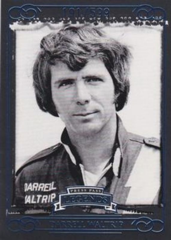 The Darrell Waltrip 2008 Press Pass Legends #40 Blue /599 card is 1 of 27 Darrell Waltrip's card variations in the 2008 Press Pass Legends set being tracked by Sports Card Investor, including Base, Bronze /299, Gold /99, Holo /25, and eBay Previews Red /5.
