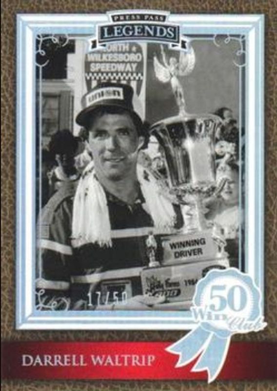 The Darrell Waltrip 2010 Press Pass Legends #64 Holofoil /50 card is 1 of 69 Darrell Waltrip's card variations in the 2010 Press Pass Legends set being tracked by Sports Card Investor, including #34 Base, #74 Base, #64 Base, #74 Gold /399, and #34 Gold /399.