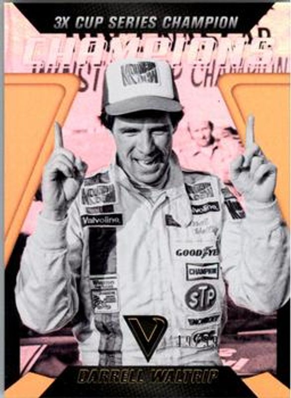 The Darrell Waltrip 2018 Victory Lane NASCAR #C4 Champions Gold /99 card is 1 of 48 Darrell Waltrip's card variations in the 2018 Victory Lane NASCAR set being tracked by Sports Card Investor, including Base, Silver, Gold /99, Red /49, and Blue /25.