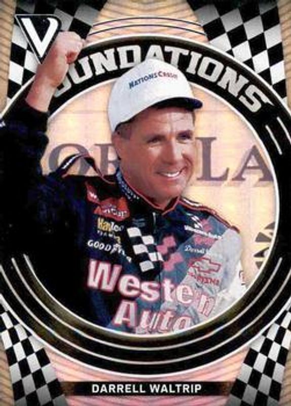 The Darrell Waltrip 2018 Victory Lane NASCAR #F7 Foundations card is 1 of 48 Darrell Waltrip's card variations in the 2018 Victory Lane NASCAR set being tracked by Sports Card Investor, including Base, Silver, Gold /99, Red /49, and Blue /25.