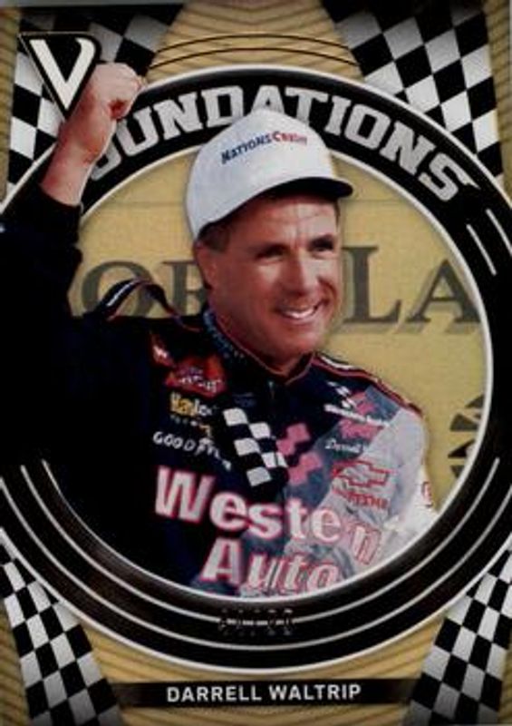 The Darrell Waltrip 2018 Victory Lane NASCAR #F7 Foundations Gold /99 card is 1 of 48 Darrell Waltrip's card variations in the 2018 Victory Lane NASCAR set being tracked by Sports Card Investor, including Base, Silver, Gold /99, Red /49, and Blue /25.