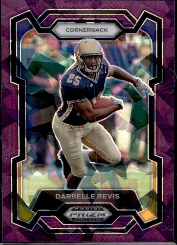The Darrelle Revis 2024 Prizm Draft Picks #94 Purple Ice /149 card is 1 of 67 Darrelle Revis' card variations in the 2024 Prizm Draft Picks set being tracked by Sports Card Investor, including Base, Green, Purple Wave, Red Ice, and Ruby Wave.