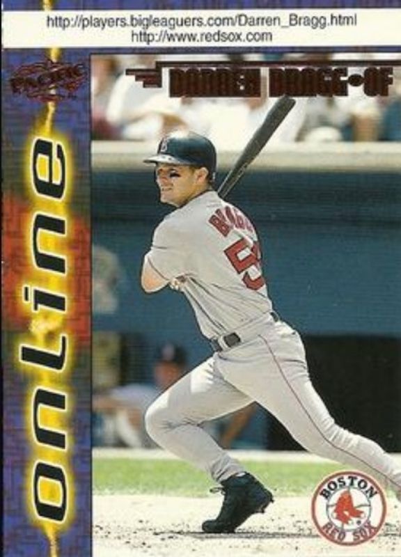 The Darren Bragg 1998 Pacific Online #108 Red card is 1 of 4 Darren Bragg's card variations in the 1998 Pacific Online set being tracked by Sports Card Investor, including Base, Base Winners, and Web Cards.