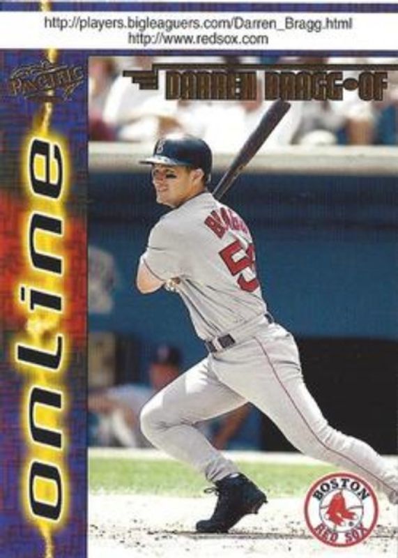 The Darren Bragg 1998 Pacific Online #108 Web Cards card is 1 of 4 Darren Bragg's card variations in the 1998 Pacific Online set being tracked by Sports Card Investor, including Base, Base Winners, and Red.