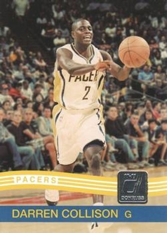 The Darren Collison 2010 Donruss #63 Base card is 1 of 16 Darren Collison's card variations in the 2010 Donruss set being tracked by Sports Card Investor, including Emerald Die-Cut, Press Proof /100, Sapphire Die-Cut /49, Ruby Die-Cut /25, and Production Line - Die Cuts Emerald.