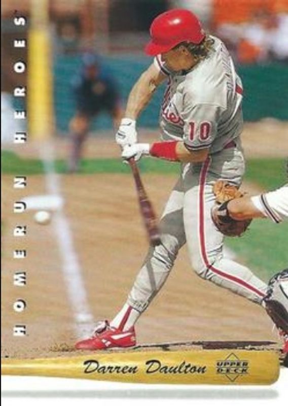 The Darren Daulton 1993 Upper Deck #HR8 Home Run Heroes card is 1 of 9 Darren Daulton's card variations in the 1993 Upper Deck set being tracked by Sports Card Investor, including #137 Base, #498 Base, #829 Base, #137 Gold Hologram, and #498 Gold Hologram.