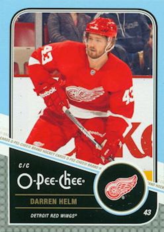 The Darren Helm 2011 O-Pee-Chee #471 Base card is 1 of 5 Darren Helm's card variations in the 2011 O-Pee-Chee set being tracked by Sports Card Investor, including Rainbow, Retro, Retro Blank Back, and Black Rainbow /100.
