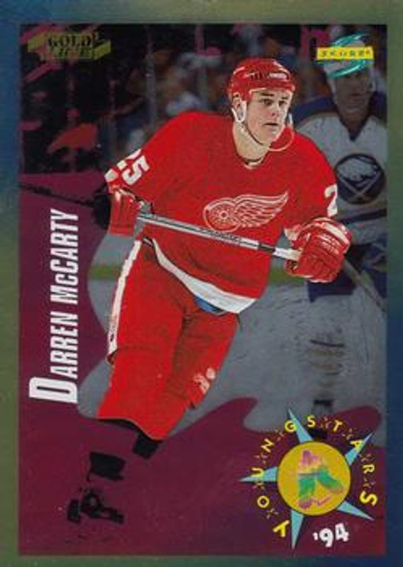 The Darren McCarty 1994 Score #258 Gold Line card is 1 of 4 Darren McCarty's card variations in the 1994 Score set being tracked by Sports Card Investor, including Base, Gold Line - Punched, and Platinum.