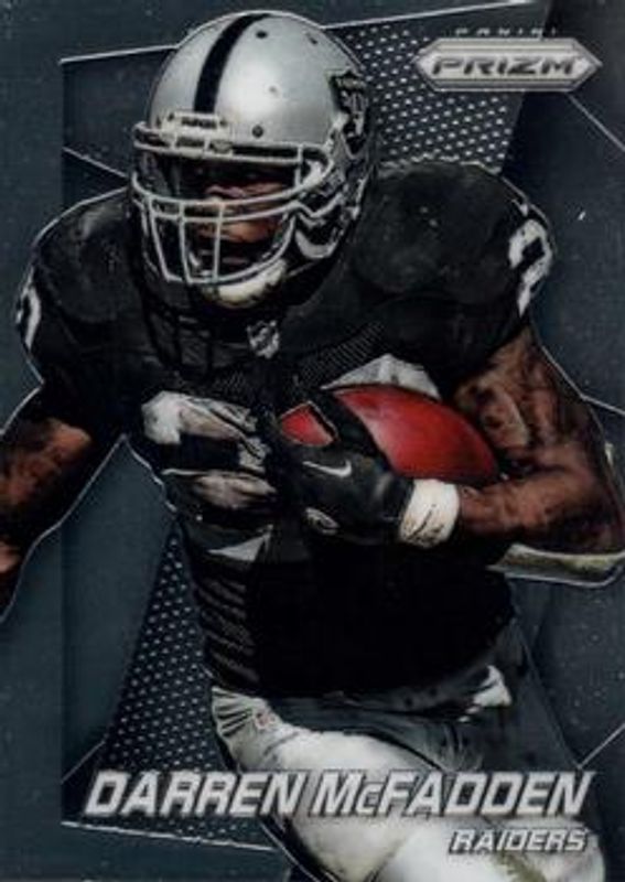 The Darren McFadden 2014 Prizm #186 Base card is 1 of 19 Darren McFadden's card variations in the 2014 Prizm set being tracked by Sports Card Investor, including Blue, Camo, Green, Neon Green & Yellow, and Orange.