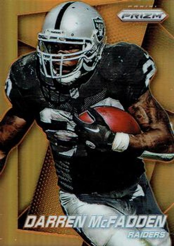 The Darren McFadden 2014 Prizm #186 Orange card is 1 of 19 Darren McFadden's card variations in the 2014 Prizm set being tracked by Sports Card Investor, including Base, Blue, Camo, Green, and Neon Green & Yellow.