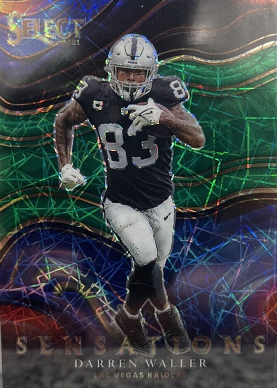 The Darren Waller 2021 Select #SEN-21 Sensations - Green /5 card in Raw condition has not changed in price in the last 30 days and was last sold for $50.00 .