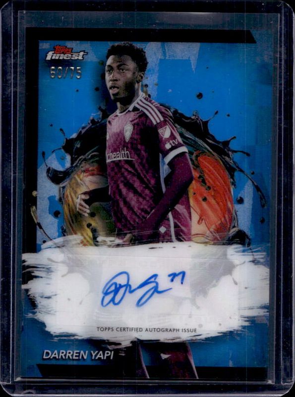 The Darren Yapi 2024 Topps Finest MLS #BA-DY Autographs - Blue Refractor /75 card is 1 of 7 Darren Yapi's card variations in the 2024 Topps Finest MLS set being tracked by Sports Card Investor, including Autographs, Autographs - Neon Green Refractor /99, Autographs - Gold Refractor /50, Autographs - Orange Refractor /25, and Autographs - Black Refractor /10.