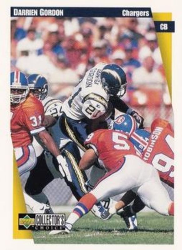 The Darrien Gordon 1997 Upper Deck Collector's Choice #142 Base card is 1 of 2 Darrien Gordon's card variations in the 1997 Upper Deck Collector's Choice set being tracked by Sports Card Investor, including Base.
