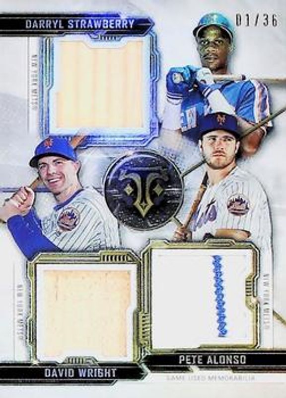 The Darryl Strawberry 2020 Topps Triple Threads #RCC-SWA Relic Combo /36 card is 1 of 56 Darryl Strawberry's card variations in the 2020 Topps Triple Threads set being tracked by Sports Card Investor, including Base, Amethyst /299, Emerald /259, Amber /199, and Gold /99.