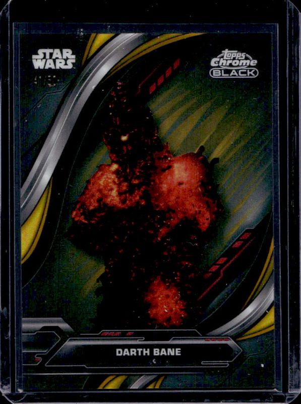 The Darth Bane 2024 Topps Chrome Black Star Wars #SP-19 Anime Short Prints - Gold Refractor /50 card is 1 of 6 Darth Bane's card variations in the 2024 Topps Chrome Black Star Wars set being tracked by Sports Card Investor, including Anime Short Prints, Anime Short Prints - Orange Refractor /25, Anime Short Prints - Magenta Ray Wave Refractor /10, Anime Short Prints - Red Refractor /5, and Anime Short Prints - Superfractor /1.