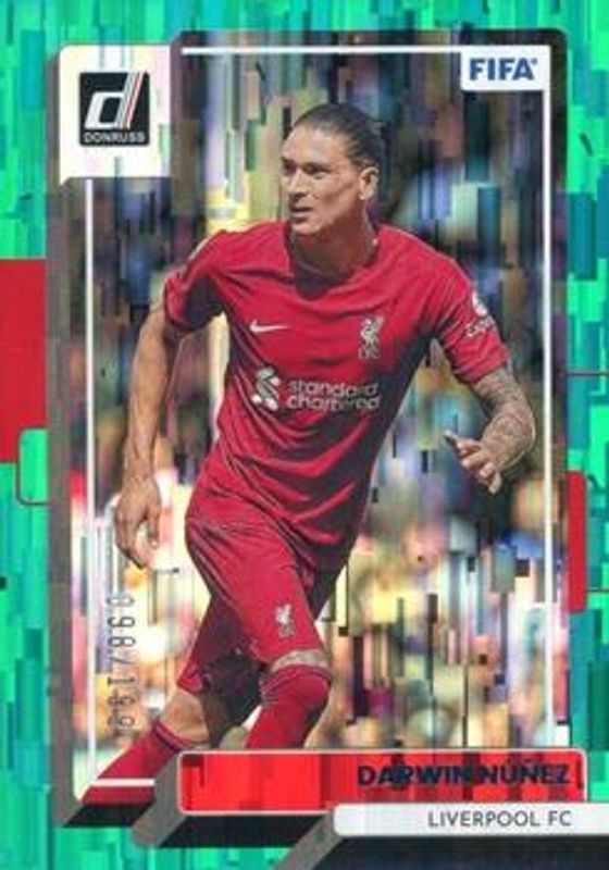 The Darwin Nunez 2022 Donruss #75 Teal /199 card is 1 of 34 Darwin Nunez's card variations in the 2022 Donruss set being tracked by Sports Card Investor, including Base, Green, Optic, Optic - Green Ice, and Optic - Holo.