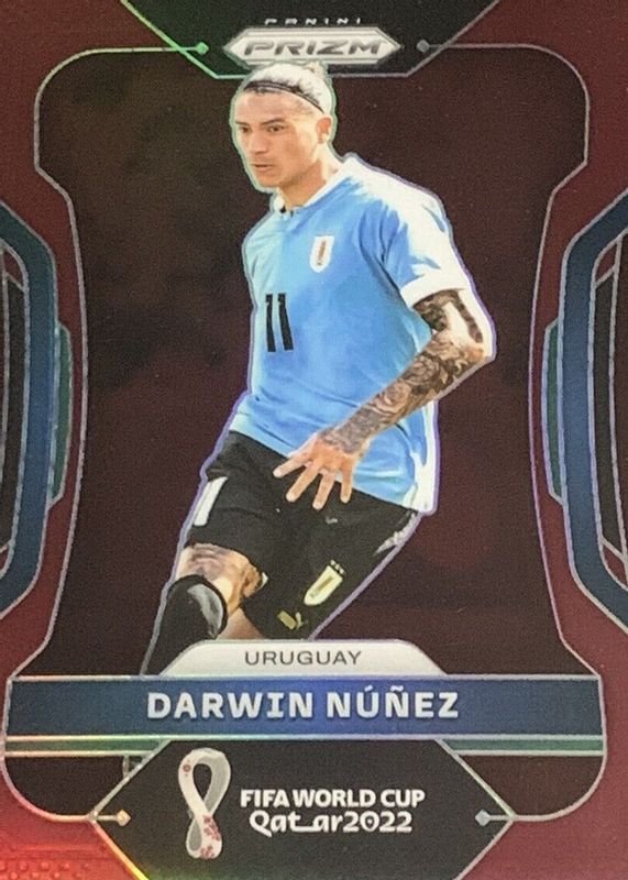 This card is 1 of 50 Darwin Nunez's card variations in the 2022 Prizm World Cup set being tracked by Sports Card Investor, including Base, Breakaway, Choice Red, Green Ice, and Green Wave.