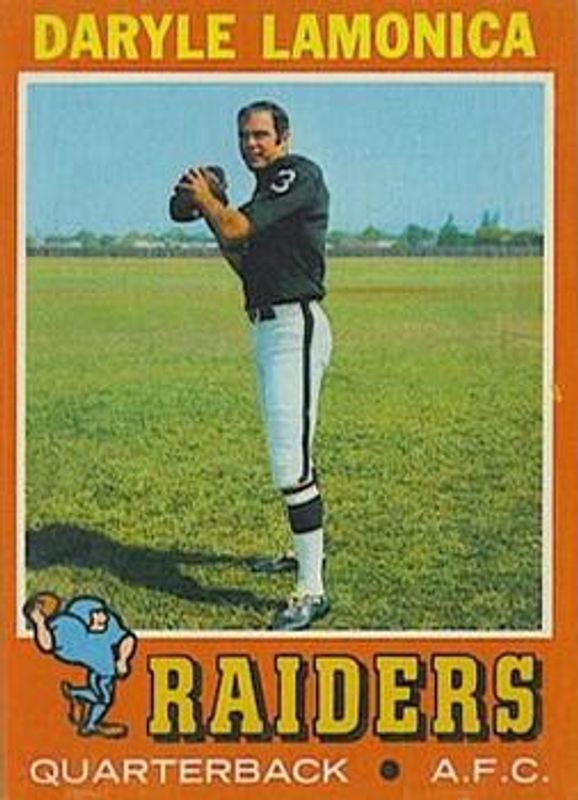 The Daryle Lamonica 1971 Topps #70 Base card is 1 of 4 Daryle Lamonica's card variations in the 1971 Topps set being tracked by Sports Card Investor, including Game Inserts, Posters, and Posters - Glossy.