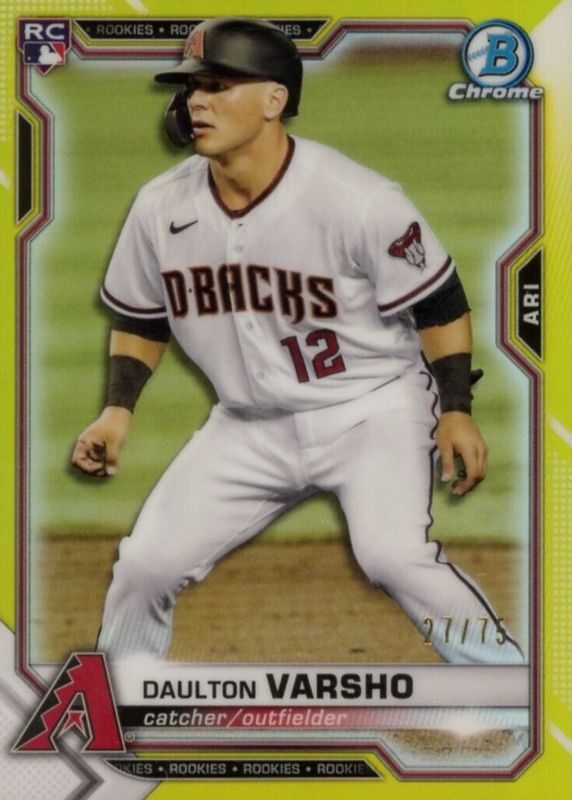 2021 Bowman Chrome Daulton Varsho #95 Yellow Refractor #'d /75 RC Diamondbacks