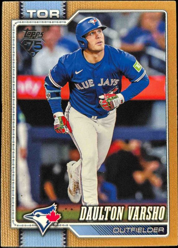 The Daulton Varsho 2026 Topps #2 Gold /2026 card is 1 of 64 Daulton Varsho's card variations in the 2026 Topps set being tracked by Sports Card Investor, including Base, Aqua Holo Foil, Aqua Rainbow Foil, Diamante Foil, and Holo Foil.