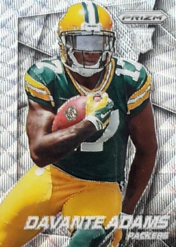 This card is 1 of 27 Davante Adams' card variations in the 2014 Prizm set being tracked by Sports Card Investor, including Base, Blue, Camo, Green, and Neon Green & Yellow.