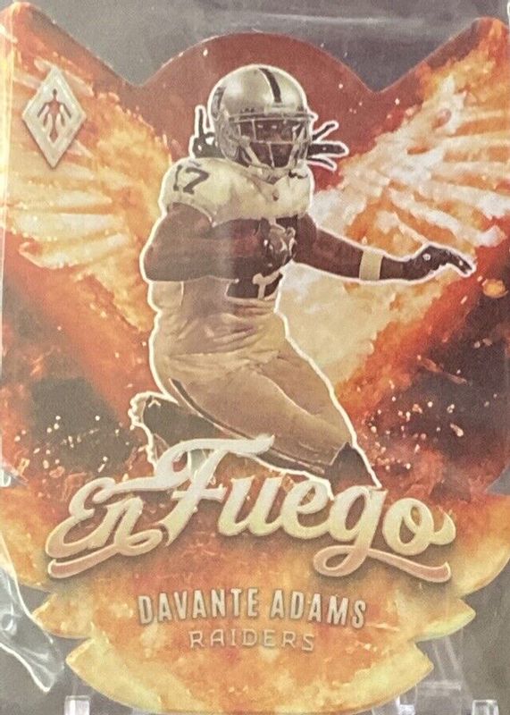 The Davante Adams 2022 Phoenix #EF-19 En Fuego /(SSP) card in Raw condition has not changed in price in the last 30 days and was last sold for $50.00 .