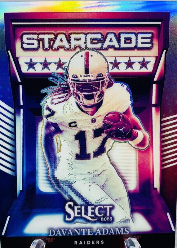 The Davante Adams 2023 Select #STC-DAD Starcade /(SSP) card in Raw condition has not changed in price in the last 30 days and was last sold for $4.26 .