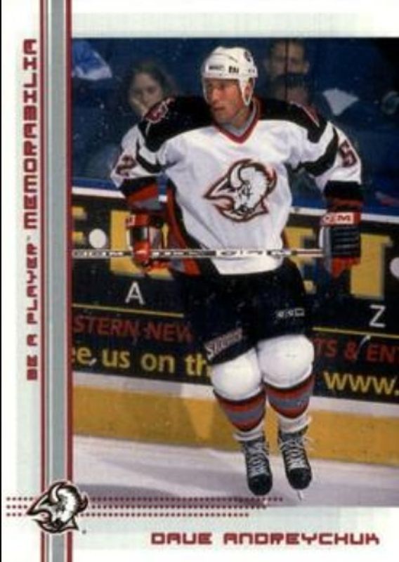 The Dave Andreychuk 2000 In The Game Be a Player Memorabilia #418 Ruby /200 card is 1 of 29 Dave Andreychuk's card variations in the 2000 In The Game Be a Player Memorabilia set being tracked by Sports Card Investor, including #385 Base, #418 Base, #385 Promos, #385 Ruby /200, and #385 Sapphire /100.