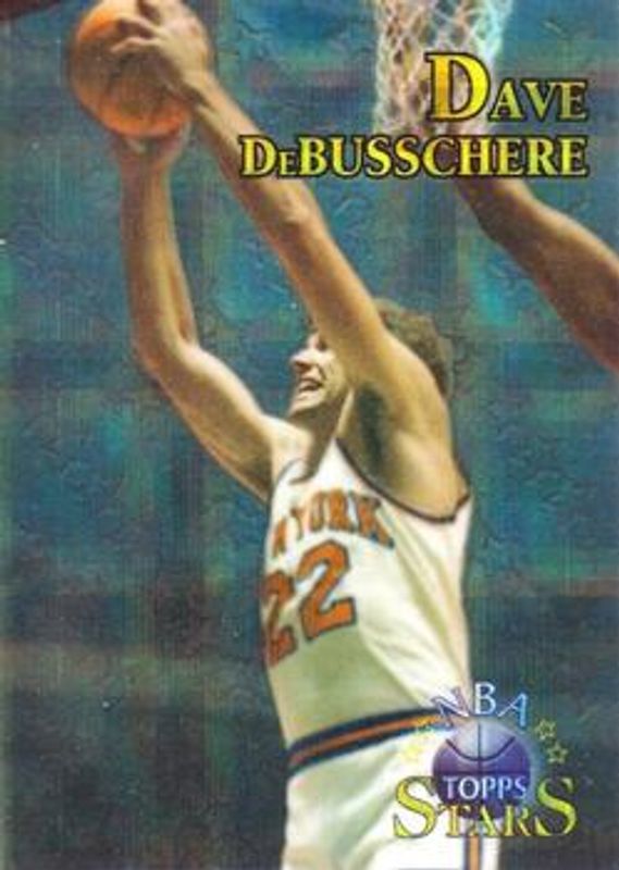 The Dave DeBusschere 1996 Topps Stars #13 Finest Atomic Refractor card is 1 of 19 Dave DeBusschere's card variations in the 1996 Topps Stars set being tracked by Sports Card Investor, including #113 Base, #13 Base, #63 Base, #113 Finest, and #13 Finest.
