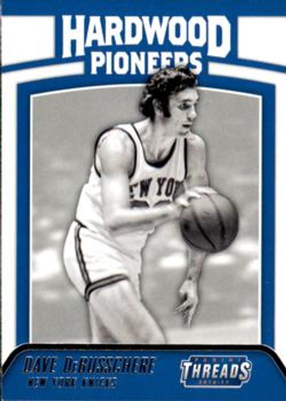 The Dave DeBusschere 2016 Threads #1 Hardwood Pioneers card is 1 of 8 Dave DeBusschere's card variations in the 2016 Threads set being tracked by Sports Card Investor, including Hardwood Pioneers - Century Proof Dazzle, Hardwood Pioneers - Century Proof Holo, Hardwood Pioneers - Century Proof Red, Hardwood Pioneers - Century Proof Dazzle Orange /25, and Hardwood Pioneers - Century Proof Dazzle Green /15.