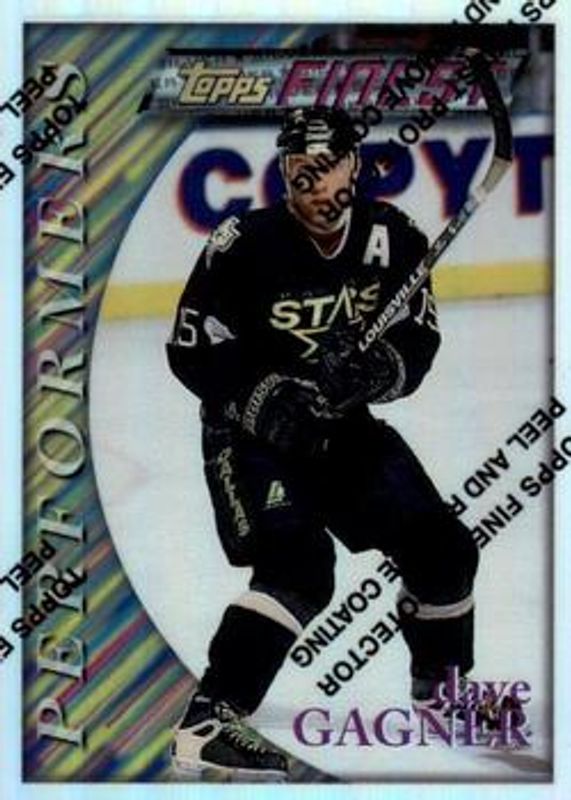 The Dave Gagner 1995 Topps Finest #31 Refractor card is 1 of 2 Dave Gagner's card variations in the 1995 Topps Finest set being tracked by Sports Card Investor, including Base.