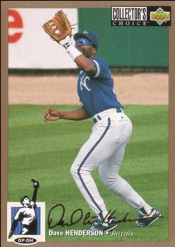 The Dave Henderson 1994 Upper Deck Collector's Choice #431 Gold Signatures card is 1 of 3 Dave Henderson's card variations in the 1994 Upper Deck Collector's Choice set being tracked by Sports Card Investor, including Base, and Silver Signatures.