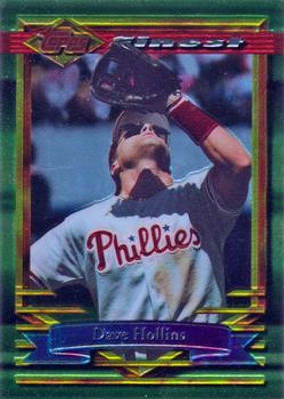 The Dave Hollins 1994 Topps Finest #47 Base card is 1 of 2 Dave Hollins' card variations in the 1994 Topps Finest set being tracked by Sports Card Investor, including Refractor.
