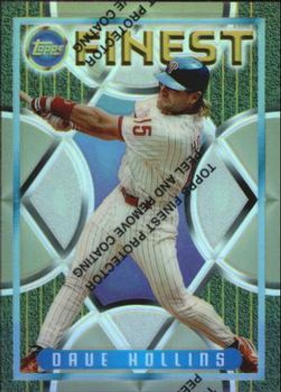 The Dave Hollins 1995 Topps Finest #159 Refractor card is 1 of 2 Dave Hollins' card variations in the 1995 Topps Finest set being tracked by Sports Card Investor, including Base.
