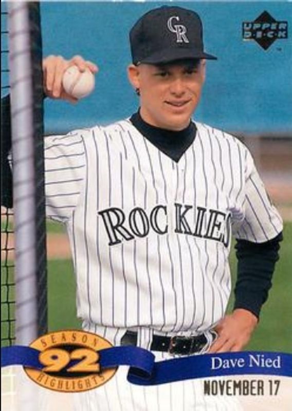 The Dave Nied 1993 Upper Deck #HI14 Season Highlights card is 1 of 5 Dave Nied's card variations in the 1993 Upper Deck set being tracked by Sports Card Investor, including #27 Base, #478 Base, #834 Base, and #834 Gold Hologram.