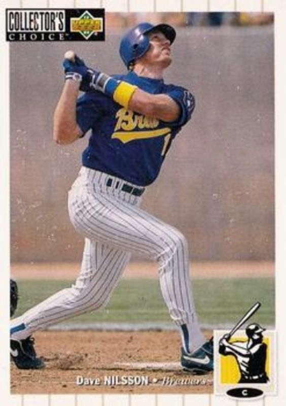 The Dave Nilsson 1994 Upper Deck Collector's Choice #216 Base card is 1 of 3 Dave Nilsson's card variations in the 1994 Upper Deck Collector's Choice set being tracked by Sports Card Investor, including Gold Signatures, and Silver Signatures.