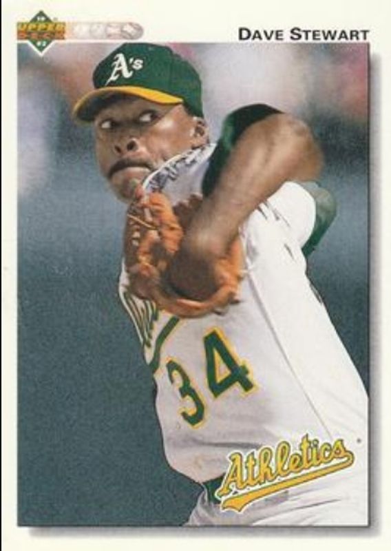 The Dave Stewart 1992 Upper Deck #547 Base card is 1 of 2 Dave Stewart's card variations in the 1992 Upper Deck set being tracked by Sports Card Investor, including Gold Hologram.