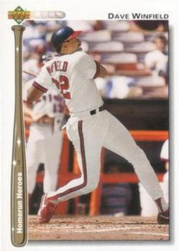 The Dave Winfield 1992 Upper Deck #HR17 Homerun Heroes card is 1 of 7 Dave Winfield's card variations in the 1992 Upper Deck set being tracked by Sports Card Investor, including #222 Base, #28 Base, #734 Base, #222 Gold Hologram, and #28 Gold Hologram.
