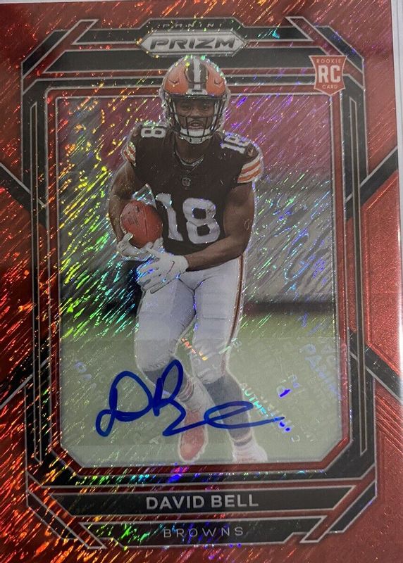 2022 PANINI PRIZM- DAVID BELL ROOKIE RED SHIMMER PRIZM AUTO /35 #334 BROWNS FOTL
