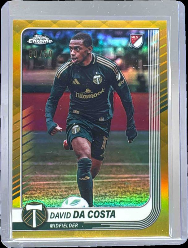 The David Costa 2025 Topps Chrome MLS #76 Gold Refractor /50 card is 1 of 39 David Costa's card variations in the 2025 Topps Chrome MLS set being tracked by Sports Card Investor, including Base, Blue Lava Refractor, Frozenfractor, Mania Refractor, and Prism Refractor.