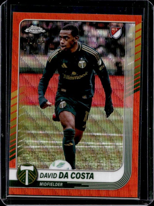 The David Costa 2025 Topps Chrome MLS #76 Orange Wave Refractor /25 card is 1 of 39 David Costa's card variations in the 2025 Topps Chrome MLS set being tracked by Sports Card Investor, including Base, Blue Lava Refractor, Frozenfractor, Mania Refractor, and Prism Refractor.