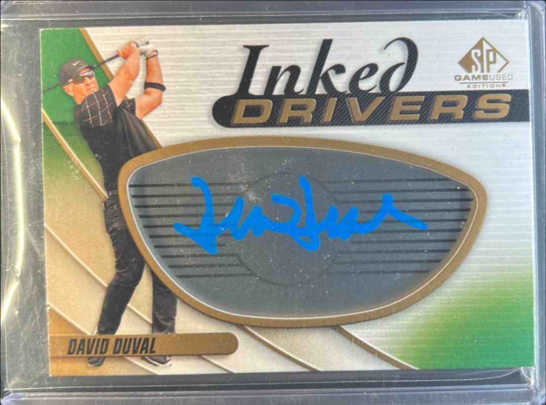 The David Duval 2024 SP Game Used #ID-DD Inked Drivers card is 1 of 24 David Duval's card variations in the 2024 SP Game Used set being tracked by Sports Card Investor, including Base /599, Shirt Gold, Auto Spectrum /25, Auto Red /15, and Front 9 Fabrics.