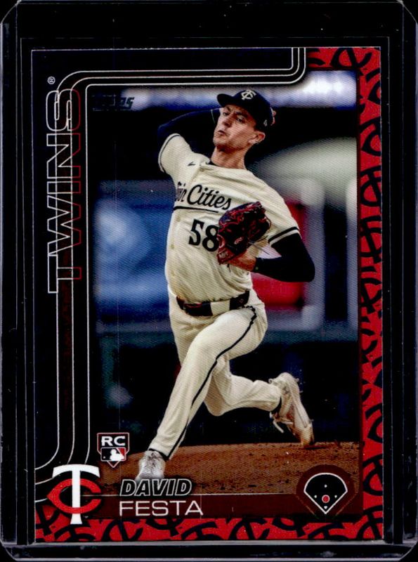 The David Festa 2025 Topps #178 Team Color Rookie card is 1 of 141 David Festa's card variations in the 2025 Topps set being tracked by Sports Card Investor, including Base, Aqua Holo Foil, Diamante Foil, Holo Foil, and Pink Diamante Foil.