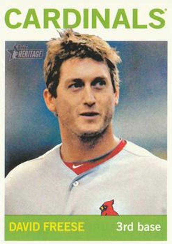 The David Freese 2013 Topps Heritage #160 Base card is 1 of 14 David Freese's card variations in the 2013 Topps Heritage set being tracked by Sports Card Investor, including Black, Blue Border, Venezuelan, Mini /100, and Chrome - Purple Refractor.