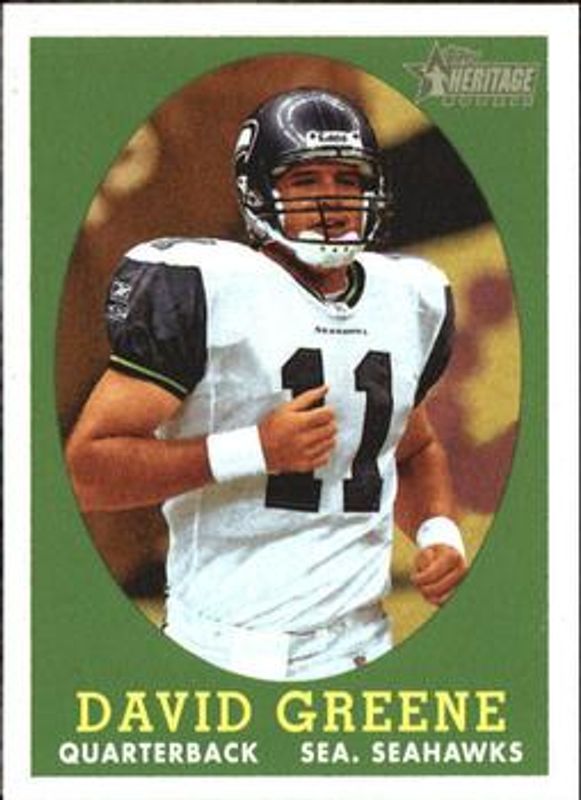 The David Greene 2005 Topps Heritage #70b Base Rookie card is 1 of 5 David Greene's card variations in the 2005 Topps Heritage set being tracked by Sports Card Investor, including #70a Base, #THC25a Foil, #THC25b Foil, and #THC25 Rainbow Foil /50.